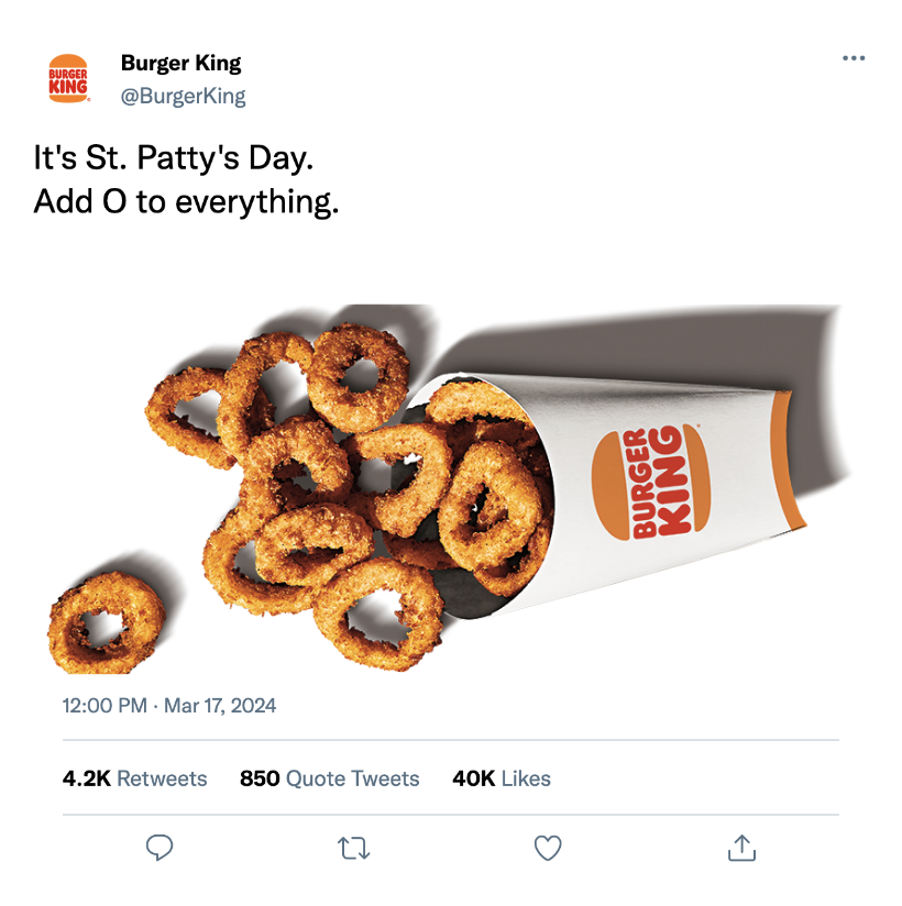 Some fun X posts that landed for cultural moments - the Oscars (when we knew Ryan Gosling would have everybody talking about his performance of I’m Just Ken), St. Patrick’s Day, Leap Day and Spring Break.